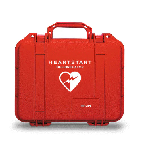 The Philips HeartStart OnSite, Home, HS1, FRx AED Plastic Waterproof Shell Carry Case is made of hard-shell plastic is suited for more rigorous use, particularly in wet outdoor settings. It can also accommodate a spare battery, spare pads, and the contents of the Fast Response Kit.